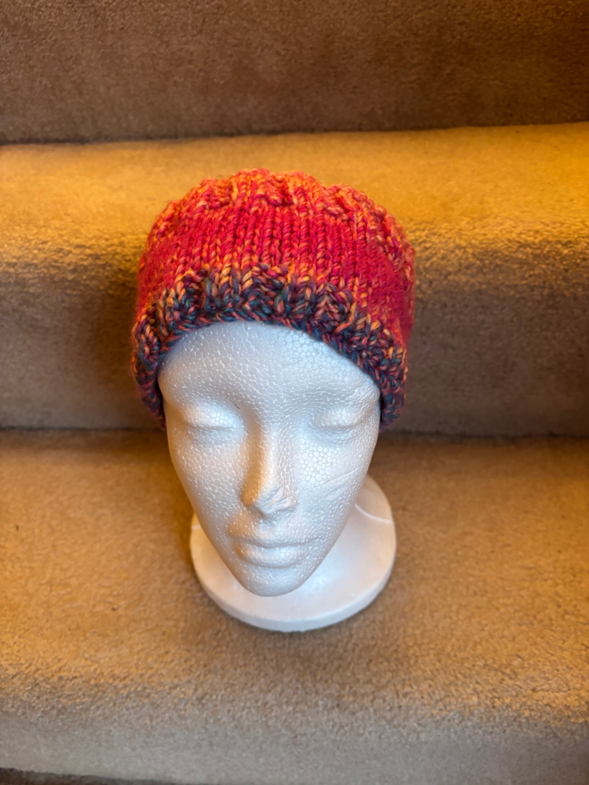 This headband is made flat; it has no embellishments. The headband width is 3.5 inches and the circumference is 21.5 inches. This headband is made to fit an adult woman. The yarn is made of acrylic. Care instructions are machine wash warm and tumble dry low.