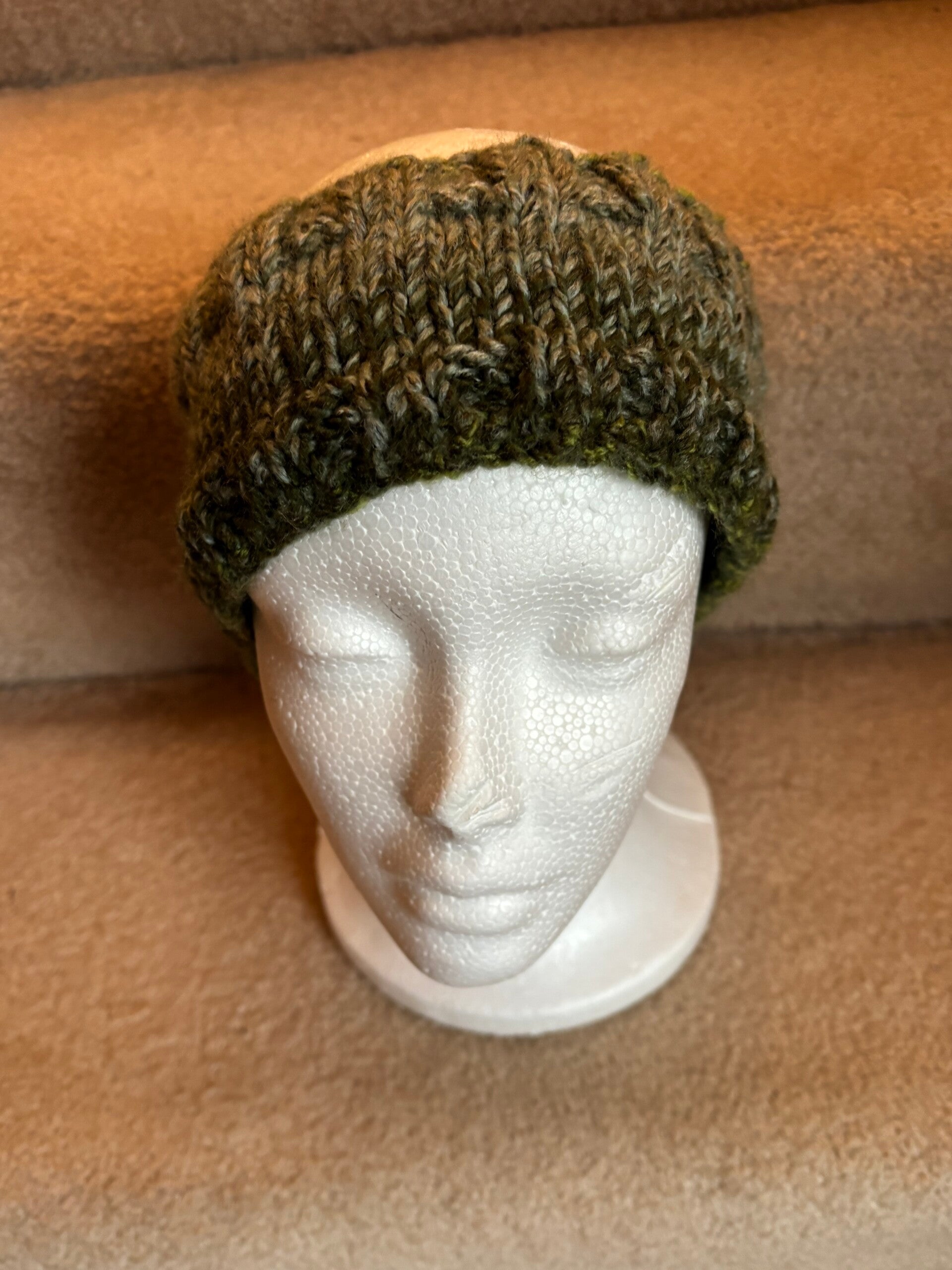 This headband is made flat; it has no embellishments. The headband width is 3.5 inches and the circumference is 21.5 inches. This headband is made to fit an adult woman. The yarn is made of acrylic. Care instructions are machine wash warm and tumble dry low.
