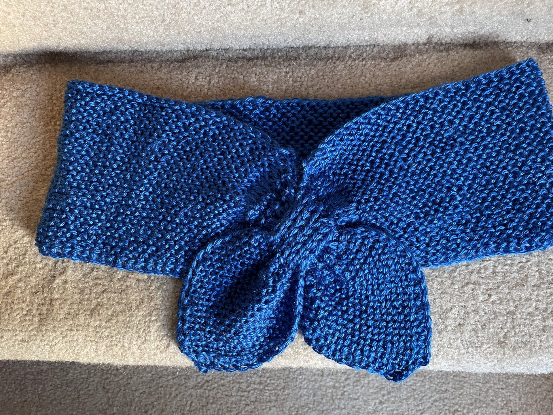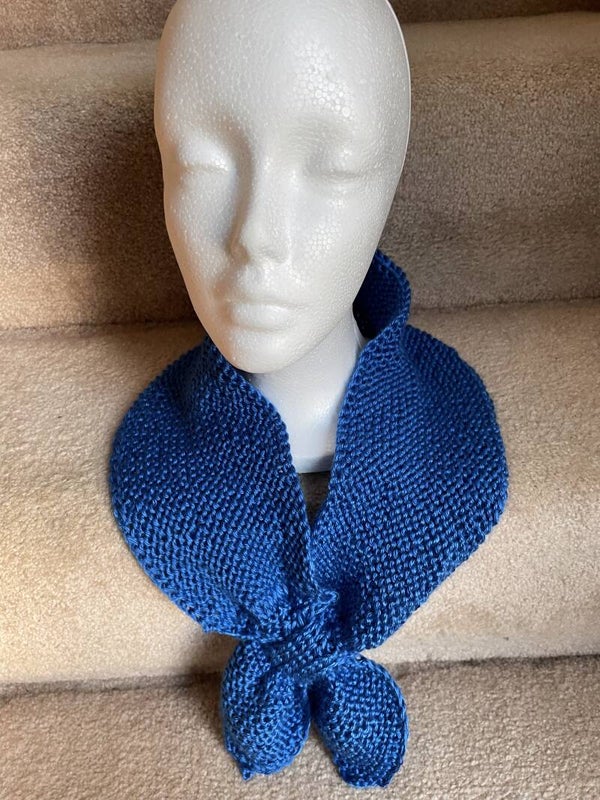This is a Ladies' Bow Tie Scarf that was popular in the 1930s. There is no need to "tie" the scarf because it has a spot to pull the scarf through itself. The total length of the scarf is 33 inches. The distance between the bow tie is 23 inches. The width of the scarf is 4.25 inches. The yarn is 100% acrylic; It is machine wash warm and tumble dry.